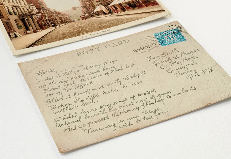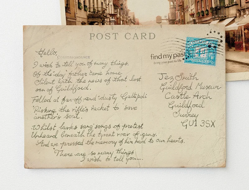 To mark WW1’s centenary we sent to potential customers authentically crafted, town-specific postcards from the past, each handwritten with poetic, true-to-life stories.