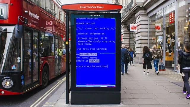 On Equal Pay Day, for year 2 of #OutOfOffice we took over digital ad screens and social media and made them look like they had stopped working.